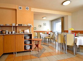 Do dyspozycji gości mamy w pełni wyposażoną kuchnię. Organizujemy śniadanie w stylu szwedzkiego stołu, po wcześniejszym ustaleniu istnieje również możliwość serwowania obiadokolacji (głównie dla grup). Zmotoryzowani moga skorzystać z darmowego parkingu należącego do pensonatu, zlokalizowanego pod samym wejściem. Osobon starszym i chorym zapewniamy za dodatkową opłatą codzienne wizyty pielęgniarskie i lekarskie.